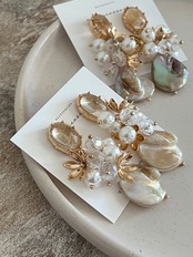 大ぶりのパールとはまた違った華やかさでお出かけや特別な場面での装いにはもちろん、普段使いとしてもお使いいただけます。