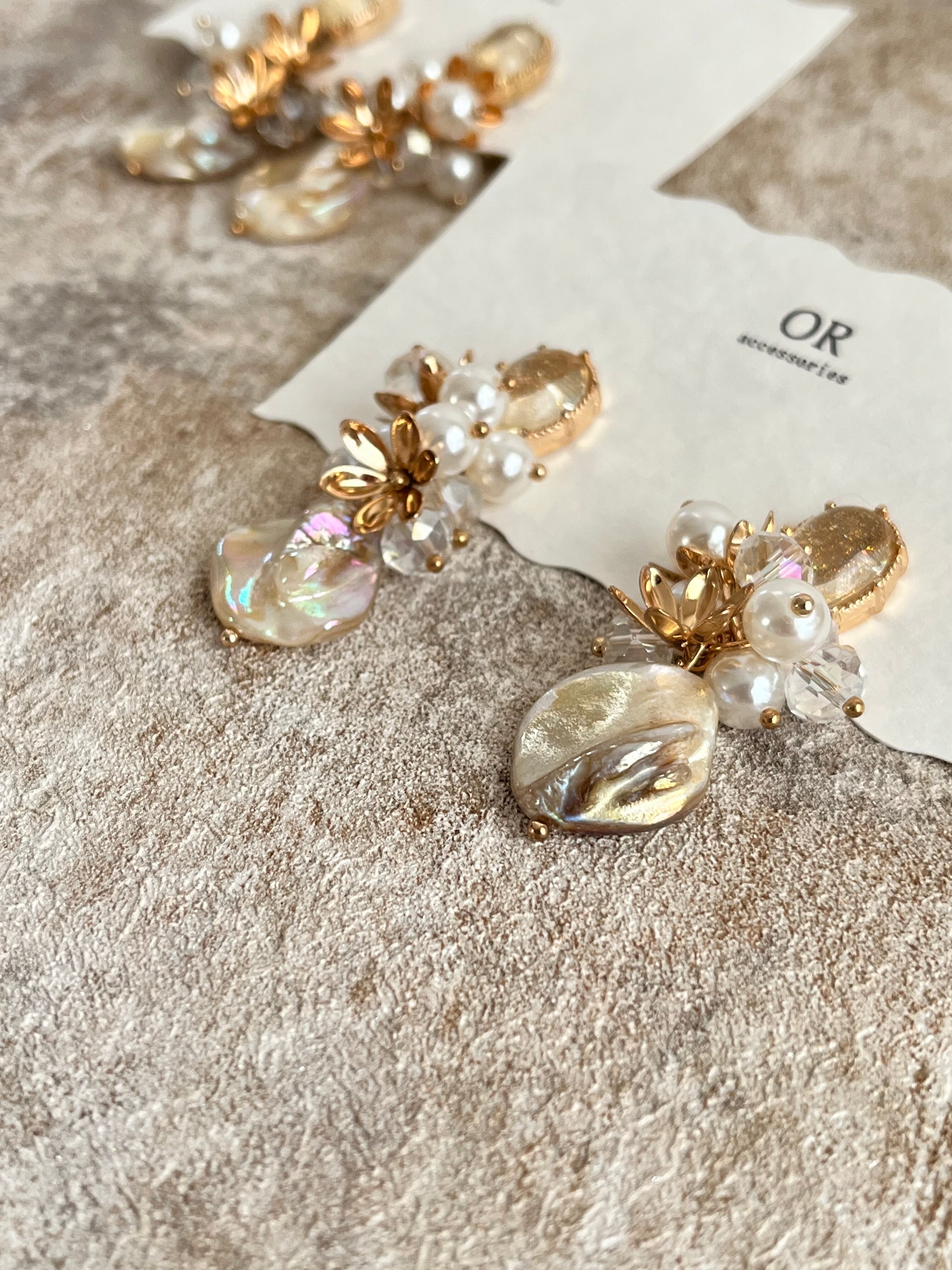 ナチュラルな魅力と存在感を放つ天然シェルパーツを使用した大ぶりイヤリング