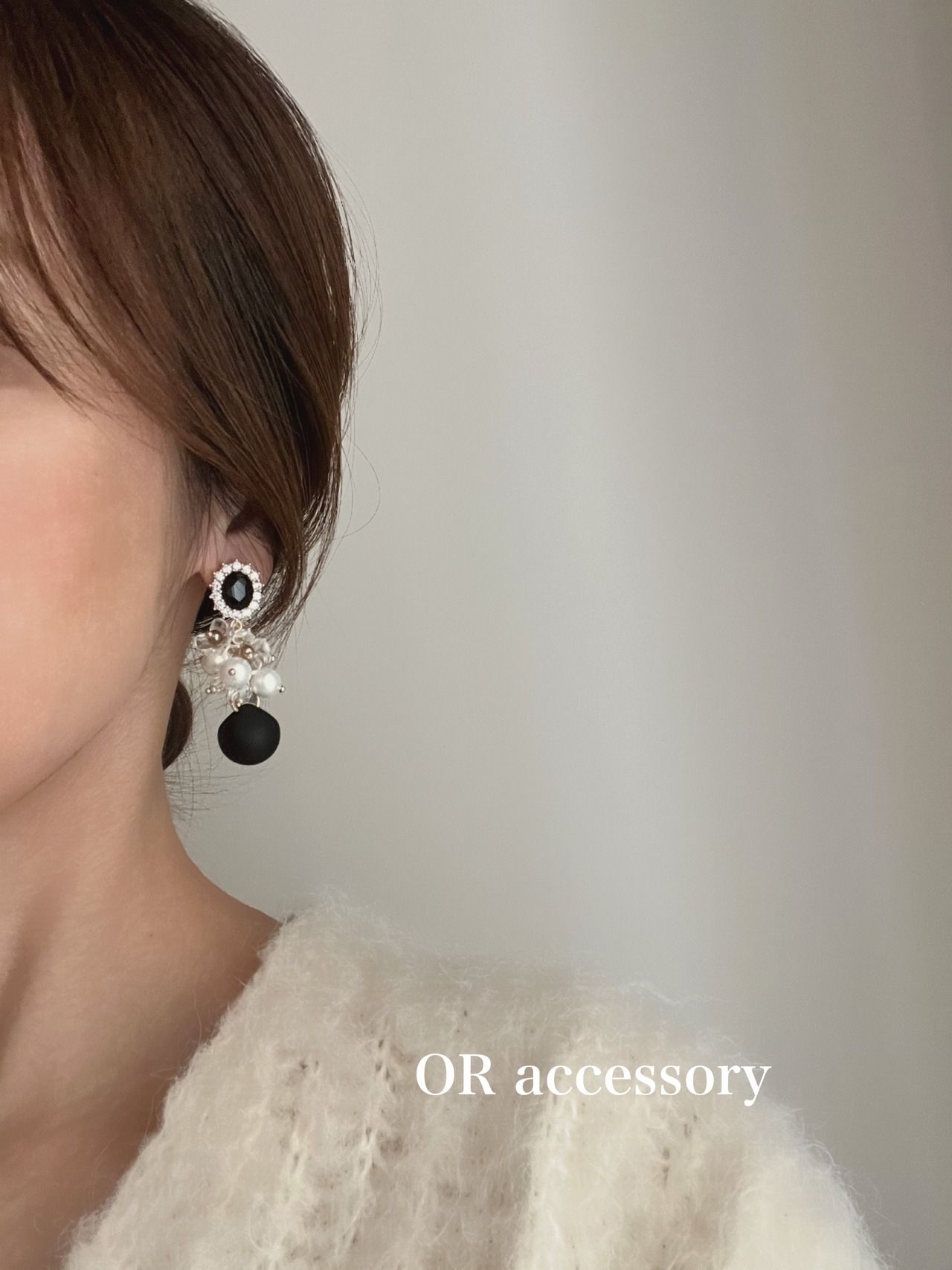 ブラックとビジュー が華やかさを演出するイヤリング